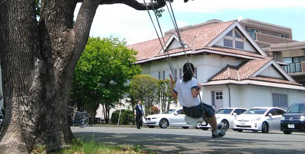 活動場所は、大阪の北部、阪急宝塚線豊中駅から約5分の所にあり、国登録有形文化財に指定されており、豊中百景にも選ばれている伝統ある木造建物です。庭には緑が多く、大きなクスノキにブランコやウッドデッキを作ったりしました。